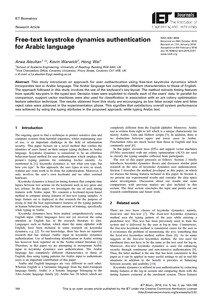 Alsultan, A., Warwick, K. and Wei, H. ORCID: https://orcid.org/0000-0002-9664-5748 (2016) Free-text keystroke dynamics authentication for Arabic language. IET Biometrics, 5 (3). pp. 164-169. ISSN 2047-4938 doi: 10.1049/iet-bmt.2015.0101