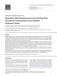 Bupropion administration increases resting-state functional connectivity in dorso-medial prefrontal cortex.