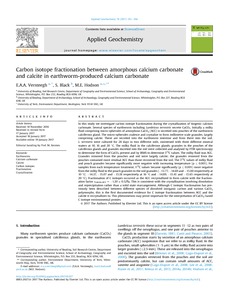 Versteegh, E. A. A., Black, S. ORCID: https://orcid.org/0000-0003-1396-4821 and Hodson, M. E. (2017) Carbon isotope fractionation between amorphous calcium carbonate and calcite in earthworm-produced calcium carbonate. Applied Geochemistry, 78. pp. 351-356. ISSN 0883-2927 doi: 10.1016/j.apgeochem.2017.01.017