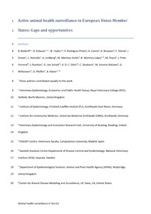 Bisdorff, B., Schauer, B., Taylor, N., Rodriguez-Prieto, V., Comin, A., Brouwer, A., Dorea, F., Drewe, J., Hoinville, L., Lindberg, A., Martinez-Aviles, M., Martinez-Lopez, B., Peyre, M., Pinto Ferreira, J., Rushton, J., Van Schaik, G., Stark, K. D. C., Staubach, C., Vicente-Rubiano, M., Witteveen, G., Pfeiffer, D. and Hasler, B. (2017) Active animal health surveillance in European Union Member States: gaps and opportunities. Epidemiology and Infection, 145 (4). pp. 802-817. ISSN 1469-4409 doi: 10.1017/S0950268816002697