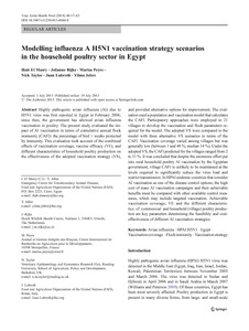 El Masry, I., Rijks, J., Peyre, M., Taylor, N., Lubroth, J. and Jobre, Y. (2014) Modelling influenza A H5N1 vaccination strategy scenarios in the household poultry sector in Egypt. Tropical Animal Health and Production, 46 (1). pp. 57-63. ISSN 1573-7438 doi: 10.1007/s11250-013-0446-8