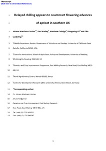 Martinez-Luscher, J., Hadley, P., Ordidge, M. ORCID: https://orcid.org/0000-0003-0115-5218, Xu, X. and Luedeling, E. (2017) Delayed chilling appears to counteract flowering advances of apricot in southern UK. Agricultural and Forest Meteorology, 237-238. pp. 209-218. ISSN 0168-1923 doi: 10.1016/j.agrformet.2017.02.017