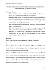Gifford, C. and Knott, F. ORCID: https://orcid.org/0000-0002-5334-7206 (2016) The effect of diagnostic label on care staff’s perceptions of cause of challenging behaviour in individuals with learning disabilities. British Journal of Learning Disabilities, 44 (4). pp. 322-328. ISSN 1468-3156 doi: 10.1111/bld.12171