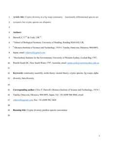 Darwell, C. T. and Cook, J. M. (2017) Cryptic diversity in a fig wasp community-morphologically differentiated species are sympatric but cryptic species are parapatric. Molecular Ecology, 26 (3). pp. 937-950. ISSN 1365-294X doi: 10.1111/mec.13985