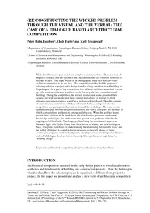 Jacobsen, P. H., Harty, C. and Tryggestad, K. (2016) (Re)constructing the wicked problem through the visual and the verbal: the case of a dialogue based architectural competition. In: ARCOM 32nd Annual Conference. (Chan, P W (Ed.) and Neilson, C J (Ed.), Proceedings 32nd Annual ARCOM Conference, 5-7 September 2016, Manchester UK. Association of Researchers in Construction Management, 761-770.)