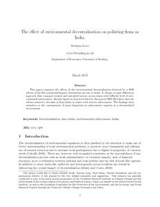 Lovo, S. ORCID: https://orcid.org/0000-0001-6231-4142 (2018) The effect of environmental decentralization on polluting firms in India. Economic Development and Cultural Change, 67 (1). pp. 55-94. ISSN 1539-2988 doi: 10.1086/697558