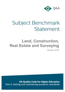 This document is a Subject Benchmark Statement for Land, Construction, Real Estate and Surveying that defines what can be expected of graduates in the subjects, in terms of what they might know, do and understand at the end of their studies.