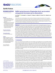 Skillful spring forecasts of September Arctic sea ice extent using passive microwave sea ice observations.