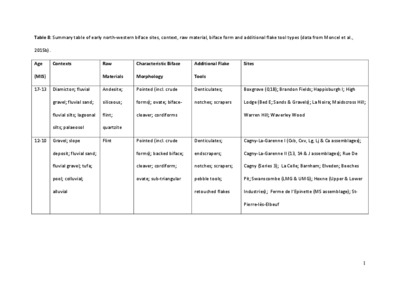 [thumbnail of Hosfield and Cole - Early hominins in north-west Europe _Table 6.pdf]