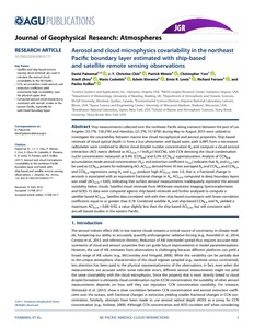 Ship measurements collected over the northeast Pacific along transects between the port of Los Angeles (33.7°N, 118.2°W) and Honolulu (21.3°N, 157.8°W) during May to August 2013 were utilized to investigate the covariability between marine low cloud microphysical and aerosol properties. Ship-based retrievals of cloud optical depth (τ) from a Sun photometer and liquid water path (LWP) from a microwave radiometer were combined to derive cloud droplet number concentration Nd and compute a cloud-aerosol interaction (ACI) metric defined as ACICCN = ∂ ln(Nd)/∂ ln(CCN), with CCN denoting the cloud condensation nuclei concentration measured at 0.4% (CCN0.4) and 0.3% (CCN0.3) supersaturation. Analysis of CCN0.4, accumulation mode aerosol concentration (Na), and extinction coefficient (σext) indicates that Na and σext can be used as CCN0.4 proxies for estimating ACI. ACICCN derived from 10 min averaged Nd and CCN0.4 and CCN0.3, and CCN0.4 regressions using Na and σext, produce high ACICCN: near 1.0, that is, a fractional change in aerosols is associated with an equivalent fractional change in Nd. ACICCN computed in deep boundary layers was small (ACICCN = 0.60), indicating that surface aerosol measurements inadequately represent the aerosol variability below clouds. Satellite cloud retrievals from MODerate-resolution Imaging Spectroradiometer and GOES-15 data were compared against ship-based retrievals and further analyzed to compute a satellite-based ACICCN. Satellite data correlated well with their ship-based counterparts with linear correlation coefficients equal to or greater than 0.78. Combined satellite Nd and ship-based CCN0.4 and Na yielded a maximum ACICCN = 0.88–0.92, a value slightly less than the ship-based ACICCN, but still consistent with aircraft-based studies in the eastern Pacific.