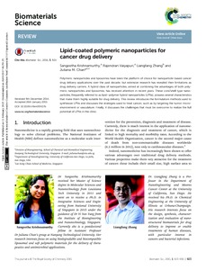 Krishnamurthy, S., Vaiyapuri, R., Zhang, L. and Chan, J. M. (2015) Lipid-coated polymeric nanoparticles for cancer drug delivery. Biomaterials Science, 3 (7). pp. 923-936. ISSN 2047-4830 doi: 10.1039/C4BM00427B