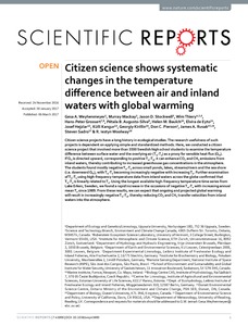 Citizen science shows systematic changes in the temperature difference between air and inland waters with global warming
