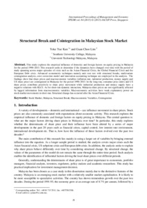 Kan, Y. Y. and Lim, G. C. (2015) Structural break and cointegration in Malaysian Stock Market. International Proceedings of Economic Management and Research, 84. pp. 25-43.