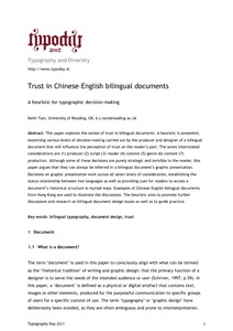 Tam, K. (2017) Trust in Chinese–English bilingual documents: a heuristic for typographic decision-making. In: Typography Day Colombo 2017, 24–25 Feb 2017, Colombo, Sri Lanka.