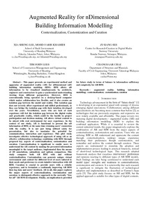 Lee, X. S., Khamidi, M. F., See, Z. S., Lees, T. and Chai, C. S. (2017) Augmented reality for nDimensional building information modelling contextualization, customization and curation. In: 22nd International Conference on Virtual Systems & Multimedia (VSMM 2016), October 17-21, 2016, Kuala Lumpur.