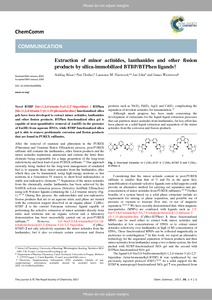 Afsar, A., Distler, P., Harwood, L. M. ORCID: https://orcid.org/0000-0002-8442-7380, John, J. and Westwood, J. (2017) Extraction of minor actinides, lanthanides and other fission products by silica-immobilized BTBP/BTPhen ligands. Chemical Communications, 53 (28). pp. 4010-4013. ISSN 1359-7345 doi: 10.1039/c7cc01286a