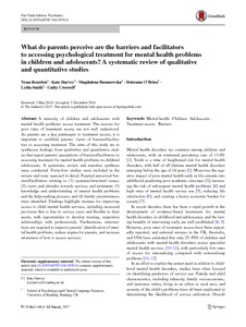 What do parents perceive are the barriers and facilitators to accessing psychological treatment for mental health problems in children and adolescents? A systematic review of qualitative and quantitative studies.