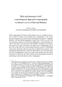 'Holy and pleasing to God': a narratological approach to hagiography in Jerome's 'Lives' of Paul and Malchus.