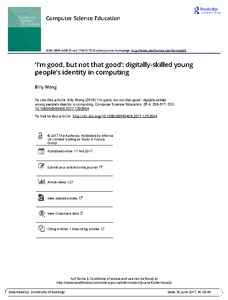 ‘I’m good, but not that good’: digitally-skilled young people’s identity in computing.