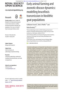 Fournié, G., Pfeiffer, D. U. and Bendrey, R. (2017) Early animal farming and zoonotic disease dynamics: modelling brucellosis transmission in Neolithic goat populations. Royal Society Open Science, 4 (2). 160943. ISSN 2054-5703 doi: 10.1098/rsos.160943