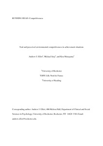 Elliot, A. J., Jury, M. and Murayama, K. (2018) Trait and perceived environmental competitiveness in achievement situations. Journal of Personality, 86 (3). pp. 353-367. ISSN 1467-6494 doi: 10.1111/jopy.12320