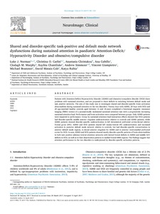 Shared and disorder-specific task-positive and default mode network dysfunctions during sustained attention in paediatric Attention-Deficit/Hyperactivity Disorder and obsessive/compulsive disorder.