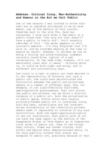 Address: Critical irony, neo-authenticity and humour in the art we call public
