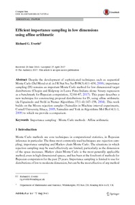 Everitt, R. G. (2018) Efficient importance sampling in low dimensions using affine arithmetic. Computational Statistics, 33 (1). pp. 1-29. ISSN 1613-9658 doi: 10.1007/s00180-017-0729-z