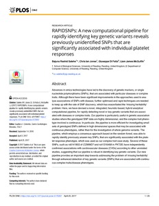 RAPIDSNPs: A new computational pipeline for rapidly identifying key genetic variants reveals previously unidentified SNPs that are significantly associated with individual platelet responses.