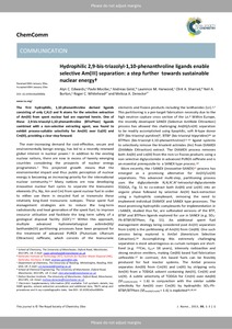 Hydrophilic 2,9-bis-triazolyl-1,10-phenanthroline ligands enable selective Am(iii) separation: a step further towards sustainable nuclear energy.