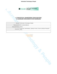 Purpose– E-learning has gained much focus from educators and researchers, with many extolling e-learning over traditional learning. Despite this focus, implementation of e-learning systems often fails. Literature considers a range of barriers, impacting the success of e-learning implementations, yet to the best of our knowledge no conceptual framework is able to consolidate existing research. Design/methodology/approach– This paper undertook an in-depth review of literature concerning e-learning implementation barriers. Papers were extracted from established journals and open sources. Articles not related to e-learning implementation barriers were discarded. A total of 259 papers were identified, published between 1990 and 2016. Hermeneutics and data-driven qualitative content analysis was used to define 68 unique barriers. Findings– The 68 unique barriers were thematically grouped into four conceptual categories, i.e. Technology (T), Individual (I), Pedagogy (P) and Enabling Conditions (EC). These 4 categories led to the conceptualization of ‘TIPEC’ Framework, which highlights the key concepts hindering e-learning implementation and delivery. Results show that most articles only consider a narrow range of success barriers. Practical implications – The proposed TIPEC framework acts as a guide for education practitioners, system developers, policy makers and researchers. It provides stakeholders with a summary of e-learning barriers. Originality/Value – This paper fulfils an identified need for a conceptual framework that consolidates all current research related to E-learning implementation barriers.