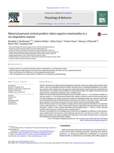Braithwaite, E. C., Pickles, A., Sharp, H., Glover, V., O'Donnell, K. J., Tibu, F. and Hill, J. (2017) Maternal prenatal cortisol predicts infant negative emotionality in a sex-dependent manner. Physiology and Behavior, 175. pp. 31-36. ISSN 1873-507X doi: 10.1016/j.physbeh.2017.03.017