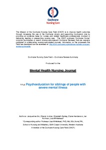 Sin, J., Jordan, C. D., Barley, E. A., Henderson, C., Norman, I. and Whitehead, L. (2017) Psychoeducation for siblings of people with severe mental illness. Issues in Mental Health Nursing, 38 (3). pp. 283-284. ISSN 0161-2840 doi: 10.1002/14651858.CD010540.pub2