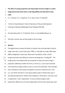 The effect of varying proportion and chop length of lucerne silage in a maize silage-based total mixed ration on diet digestibility and milk yield in dairy cattle.
