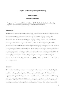 With the rise of digital media and their increasingly pervasive use in educational settings, more and more attention is being paid to the ways technology can facilitate language learning. Most discussions about the effects of technology on language learning, however, have focused rather narrowly on ‘new media’ (computers, the internet, and mobile devices), ignoring the fact that technological mediation has been a central component of language learning ever since the invention of the printing press. While understanding the effects of digital technologies on language learning is of primary importance, especially as such technologies are becoming so much part of the fabric of our everyday communicative practices, doing so requires a more general understanding of technological mediation itself (see Norris & Jones, 2005), and the ways it influences both cognitive and social processes.