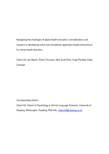 Hill, C., Martin, J. L., Thomson, S., Scott-Ram, N., Penfold, H. and Creswell, C. (2017) Navigating the challenges of digital health innovation: considerations and solutions in developing online and smartphone application based interventions for mental health disorders. British Journal of Psychiatry, 211 (2). pp. 65-69. ISSN 1472-1465 doi: 10.1192/bjp.bp.115.180372