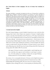 This paper undertakes a systematic investigation into the use of German Nazi vocabulary in English. Nazi vocabulary is checked for frequency of occurrence in a large webcorpus of English and then, where it occurs, for reference to Nazi discourse. Next, its frequency is compared to equivalent French and German webcorpora, showing whether or not the use of Nazi vocabulary outside German is unique to English and whether or not its current usage differs between German and the borrowing languages. Finally, the use of two words that occur with similar frequency in all three languages – judenrein and Blitzkrieg – and of two words that occur with the highest difference in frequency – Anschluss and Lebensraum – is investigated in detail by means of the Sketch Engine corpus tool, including analysis of collocations which indicate contexts of usage. The results can inform further research into lexical borrowing by demonstrating that borrowed words may be used in ways that differ notably from their use in the donor language.