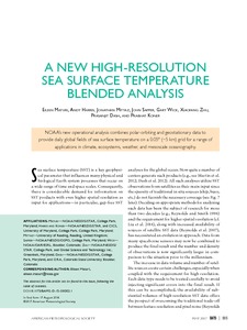 Maturi, E., Harris, A., Mittaz, J., Sapper, J., Wick, G., Zhu, X., Dash, P. and Koner, P. (2017) A new high-resolution sea surface temperature blended analysis. Bulletin of the American Meteorological Society, 98 (5). pp. 1015-1026. ISSN 1520-0477 doi: 10.1175/BAMS-D-15-00002.1