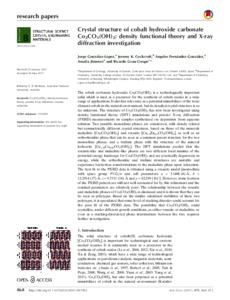 Uncontrolled Keywords Cobalt carbonate hydroxide, Density Functional Theory, Powder X-ray diffraction