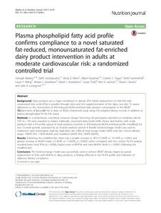 Plasma phospholipid fatty acid profile confirms compliance to a novel saturated fat-reduced, monounsaturated fat-enriched dairy product intervention in adults at moderate cardiovascular risk: a randomized controlled trial.
