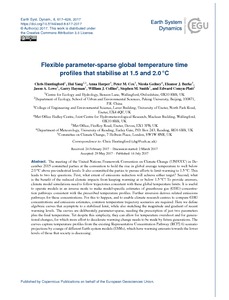 Flexible parameter-sparse global temperature time-profiles that stabilise at 1.5C and 2.0C.