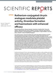Ruthenium-conjugated chrysin analogues modulate platelet activity, thrombus formation and haemostasis with enhanced efficacy.