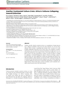 Another continental vulture crisis: Africa's vultures collapsing toward extinction.