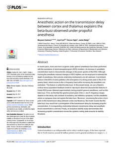 Hashemi, M., Hutt, A., Hight, D. and Sleigh, J. (2017) Anesthetic action on the transmission delay between cortex and thalamus explains the beta-buzz observed under propofol anesthesia. PLoS ONE, 12 (6). e0179286. ISSN 1932-6203 doi: 10.1371/journal.pone.0179286