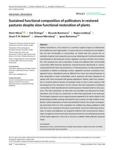 Winsa, M., Öckinger, E., Bommarco, R., Lindborg, R., Roberts, S. P. M., Wärnsberg, J. and Bartomeus, I. (2017) Sustained functional composition of pollinators in restored pastures despite slow functional restoration of plants. Ecology and Evolution, 7 (11). pp. 3836-3846. ISSN 2045-7758 doi: 10.1002/ece3.2924