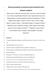 Malavelle, F. F., Haywood, J. M., Jones, A., Gettelman, A., Clarisse, L., Bauduin, S., Allan, R. P. ORCID: https://orcid.org/0000-0003-0264-9447, Karset, I. H. H., Kristjánsson, J. E., Oreopoulos, L., Cho, N., Lee, D., Bellouin, N. ORCID: https://orcid.org/0000-0003-2109-9559, Boucher, O., Grosvenor, D. P., Carslaw, K. S., Dhomse, S., Mann, G. W., Schmidt, A., Coe, H., Hartley, M. E., Dalvi, M., Hill, A. A., Johnson, B. T., Johnson, C. E., Knight, J. R., O’Connor, F. M., Partridge, D. G., Stier, P., Myhre, G., Platnick, S., Stephens, G. L., Takahashi, H. and Thordarson, T. (2017) Strong constraints on aerosol–cloud interactions from volcanic eruptions. Nature, 546 (7659). pp. 485-491. ISSN 0028-0836 doi: 10.1038/nature22974