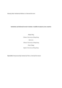 Uncontrolled Keywords Comparative entrepreneurshipAngel investmentSocial trustInstitutional perspective