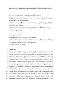 Guo, Y., Harris, P., Kaur, A., Pastrana, L. and Jauregi, P. (2017) Characterisation of β-lactoglobulin nanoparticles and their binding to caffeine. Food Hydrocolloids, 71. pp. 85-93. ISSN 0268-005X doi: 10.1016/j.foodhyd.2017.04.027
