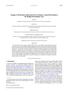 Changes in wind speed under heat waves enhance urban heat islands in the Beijing Metropolitan Area