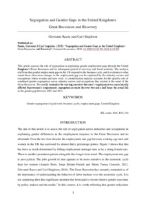 Razzu, G. ORCID: https://orcid.org/0000-0003-2640-8314 and Singleton, C. ORCID: https://orcid.org/0000-0001-8247-8830 (2018) Segregation and gender gaps in the United Kingdom's great recession and recovery. Feminist Economics, 24 (4). pp. 31-55. ISSN 1466-4372 doi: 10.1080/13545701.2018.1451907